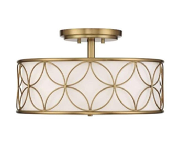 Description: 3lts E26 semi flush mount with white fabric lamp shade